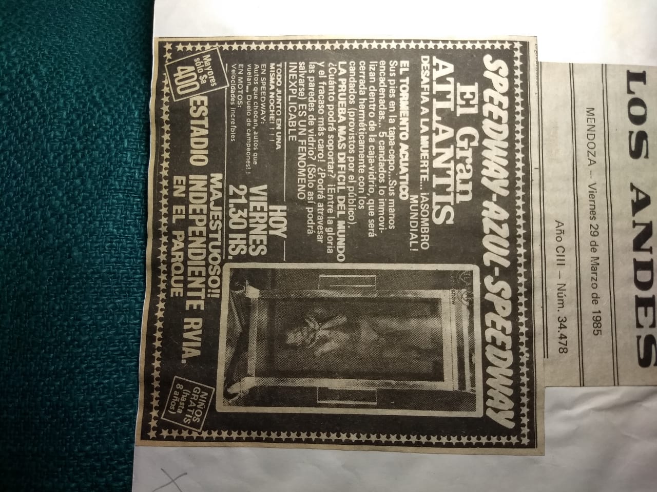 Para la década de 1980, todas estas experiencias y aprendizajes lo situaron como uno de los magos más importantes de la escena latinoamericana bajo el nombre de “El gran Atlantis”. Dado el auge de la televisión de espectáculos, Atlantis participó en diferentes programas a la par que realizaba presentaciones multitudinarias en diferentes lugares, tales como los circos. Es en este contexto cuando presenta una consolidada técnica que fue el punto más álgido de su trayectoria. En el diario cordobés “La voz del interior” anunciaba en 1987 a Mario de esta manera: “Circo Hermanos Segura presenta: El gran Atlantis. El tormento acuático: Sus pies en la tapa cepo… Sus manos encadenadas… 5 candados lo inmovilizan dentro de la caja de vidrio. La prueba más difícil del mundo: ¿Cuánto podrá soportar? ¡Entre la gloria y el fracaso más caro! ¿Podrá atravesar las paredes de vidrio?”. La promoción era clara y motivadora; el tormento acuático se perfilaba como una arriesgada técnica que maravilló al público que tuvo la dicha de observarlo en vivo y en directo. Una destreza sin igual que venía, precisamente, de mucho tiempo de estudio, perfección e innovación de parte de Mario, pues este escapismo es una variante original y mejorada de la esencia del escapismo del mago Houdini.
