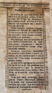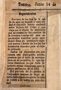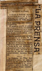 Se menciona el espectáculo de Reginio del Villar.