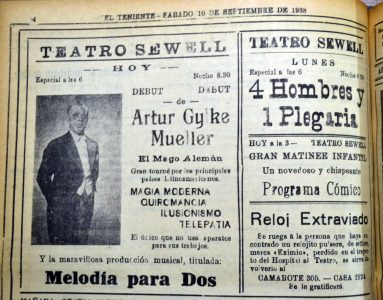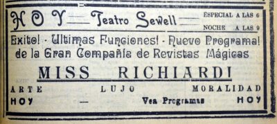 Se publicita el espectáculo de Richiardi en Sewell y la Revista Sucesos.