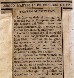 Se realiza un show en el teatro Municipal de Curicó destacando el número de la mujer que vuela.