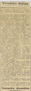 Se menciona el éxito del espectáculo de Li Ho Chang, destacando algunos números: "El Arca de Noé" y el desaparecimiento de una persona suspendida en el aire. Se menciona nuevamente que Li Ho Chang recuerda a las ilusiones de Raymond. Se menciona "el espectáculo es bueno, pero creemos un poco exagerado el precio que ha fijado en las localidades"