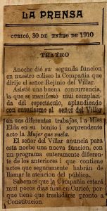 Se destaca la figura de Reginio del Villar y se menciona la instalación de un biografo